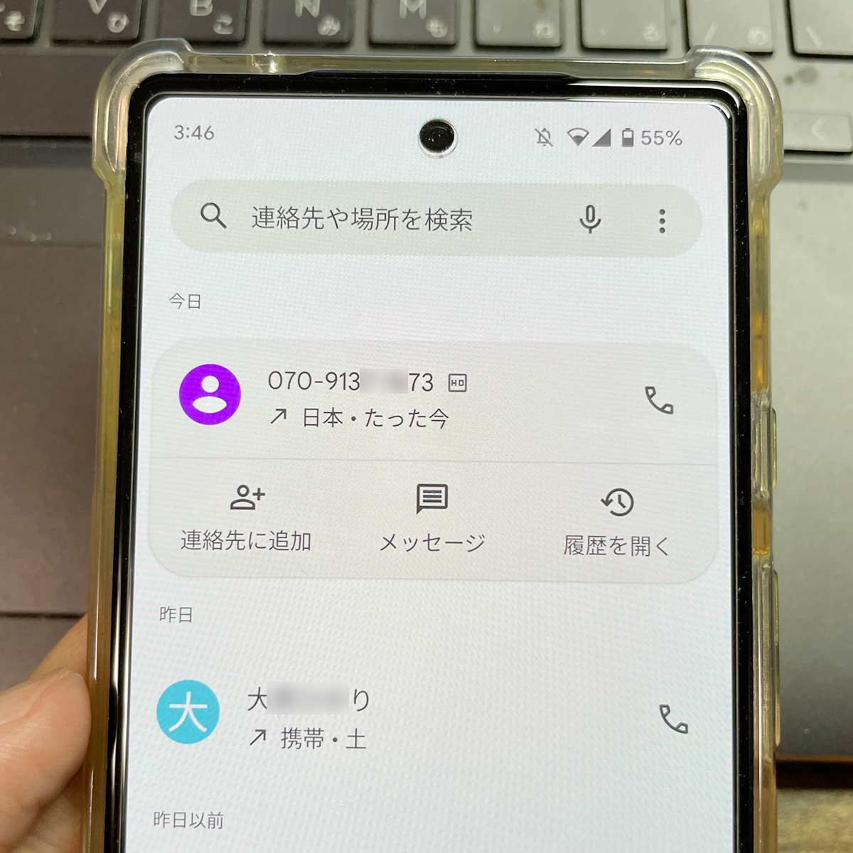 GooglePixelを使ってて、かかってきた電話番号を連絡帳に新規登録する手順は以下となります。
