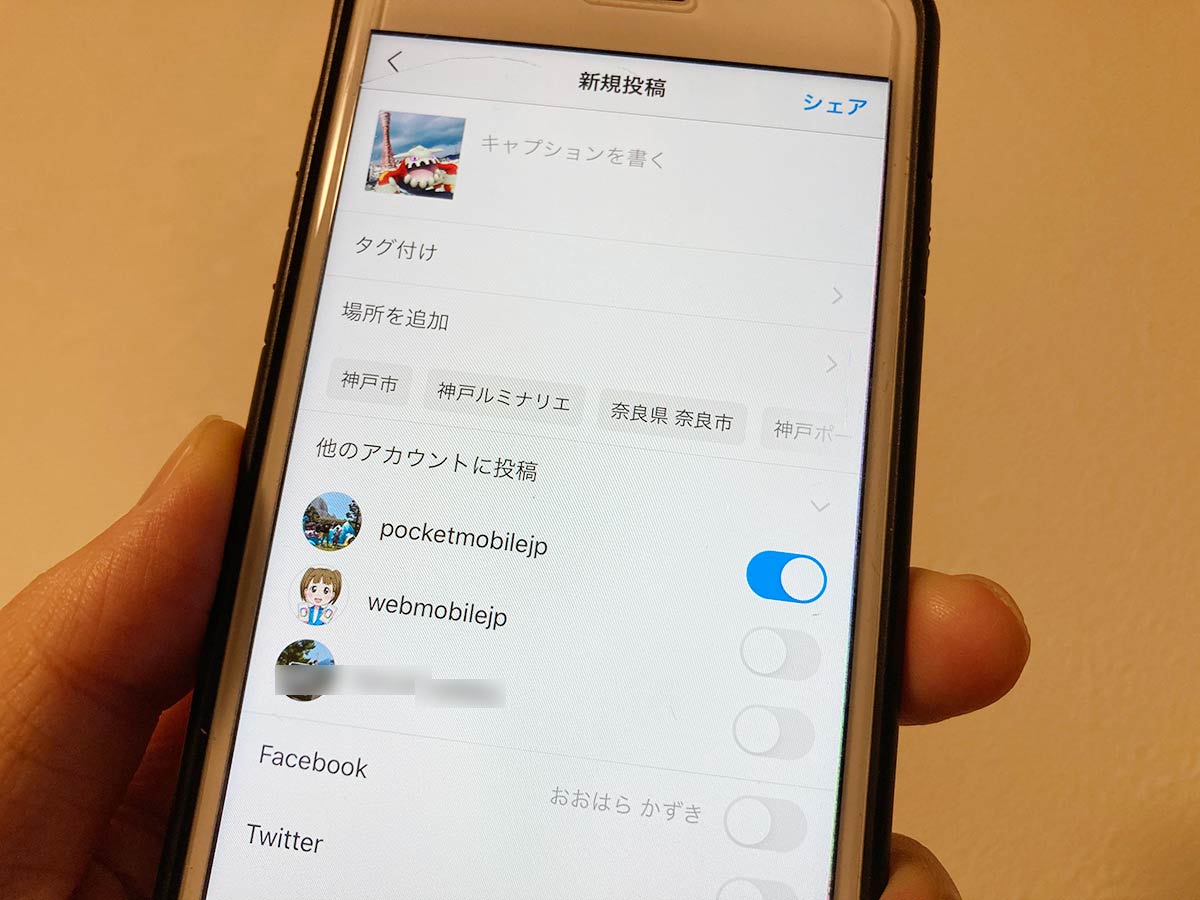 - 他のアカウントに投稿…複垢にも連動して投稿できます。