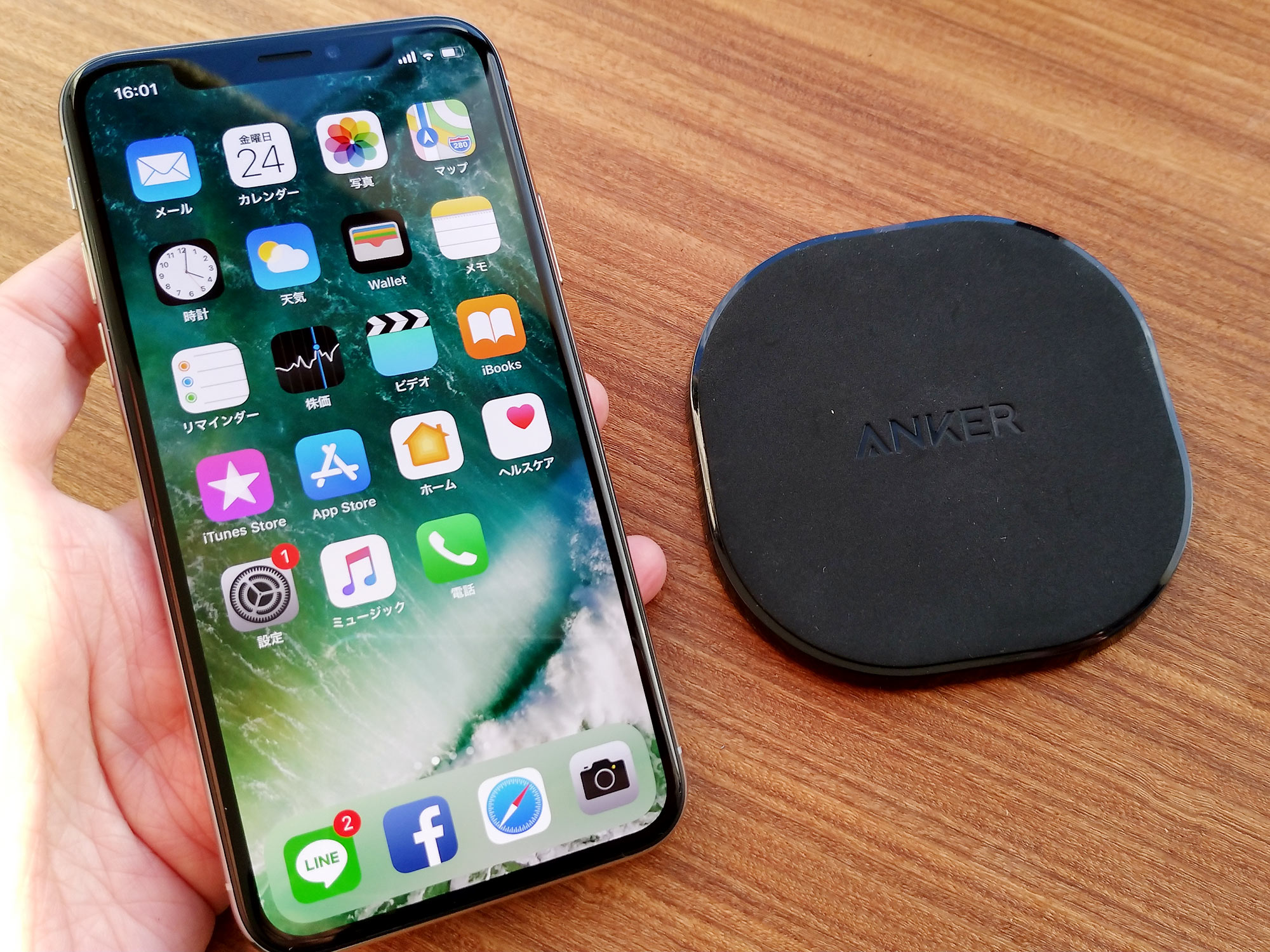 iPhoneXはワイヤレス充電対応です。私は、モバイルバッテリーで人気のAnker製のワイヤレス充電器を買いました。