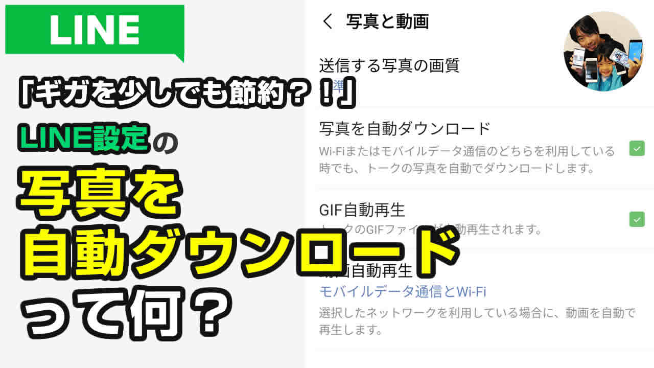 LINEの設定の”写真を自動ダウンロード”は、ギガを節約するための設定とのこと!