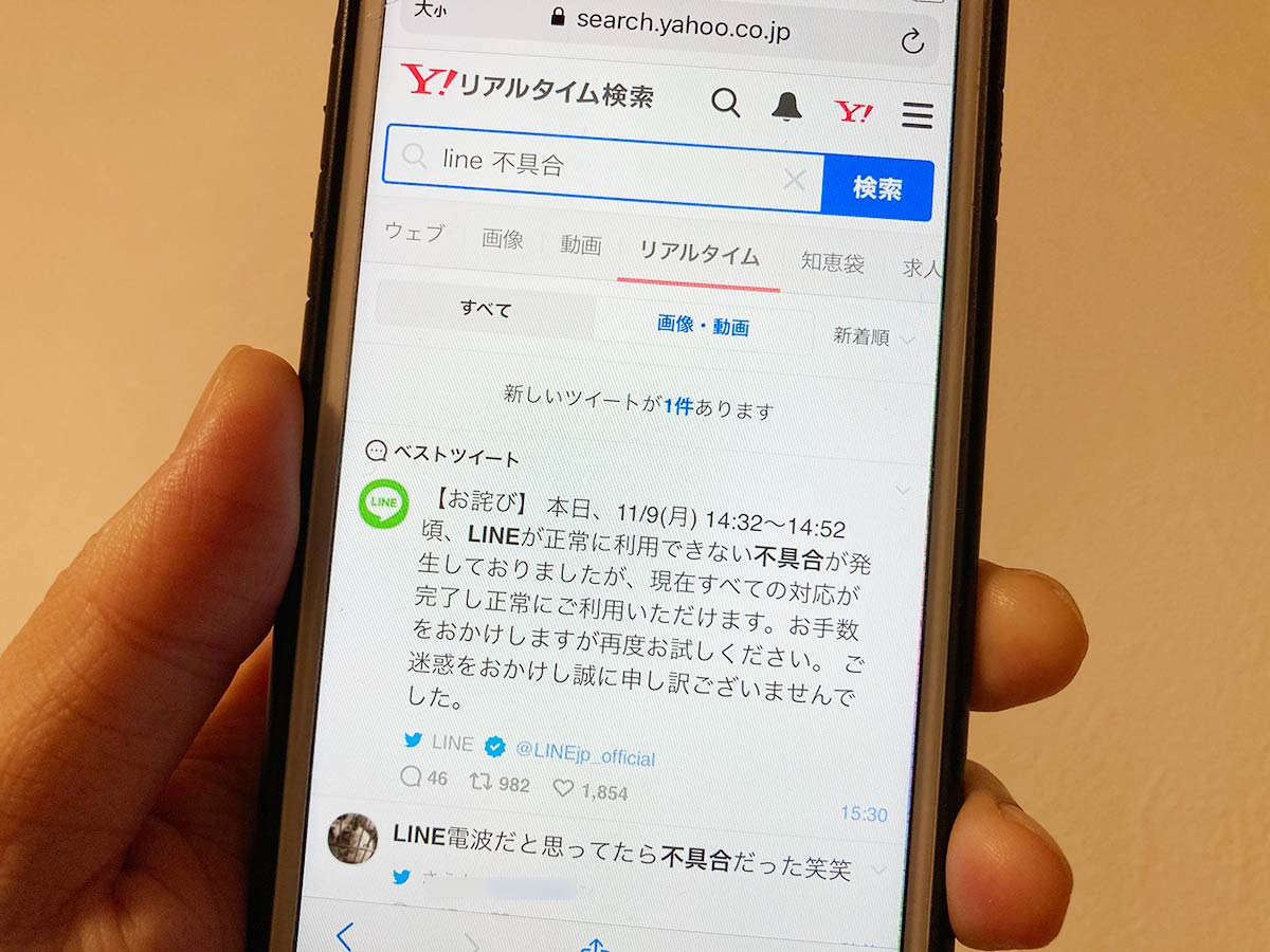 なお、Twitterで「LINE 不具合」と検索するのもありです。