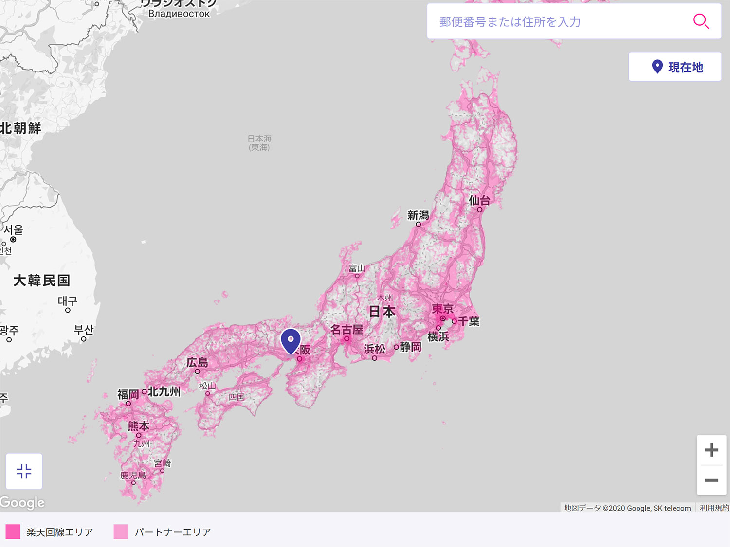 楽天回線エリアとパートナー回線(au回線)エリアの現状。