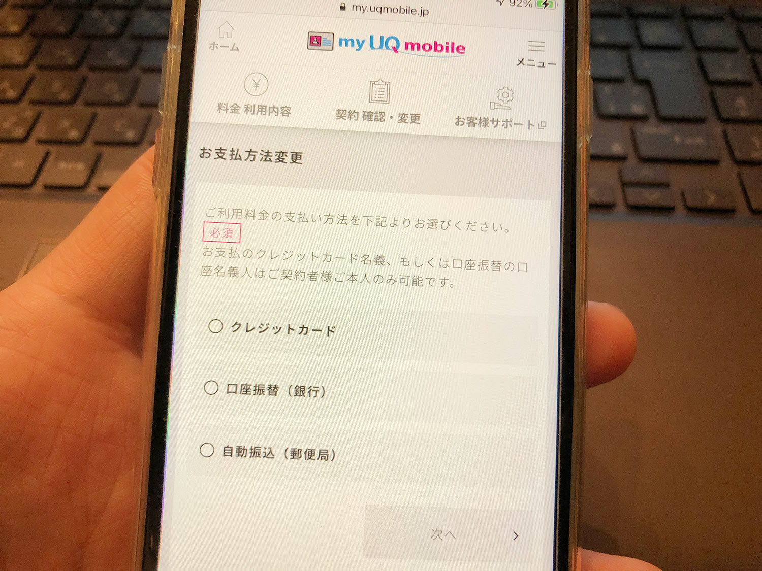 UQモバイルの月々の通信費の支払い方法を変更しました!変更手続きは簡単、すぐ済みます。注意点を押さえつつ手順を解説していきます。